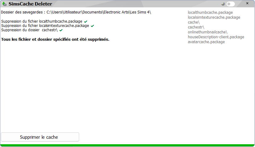 SimsCache Deleter is an application that allows all Sims 4 players on Windows to easily delete the game cache in just a few clicks.